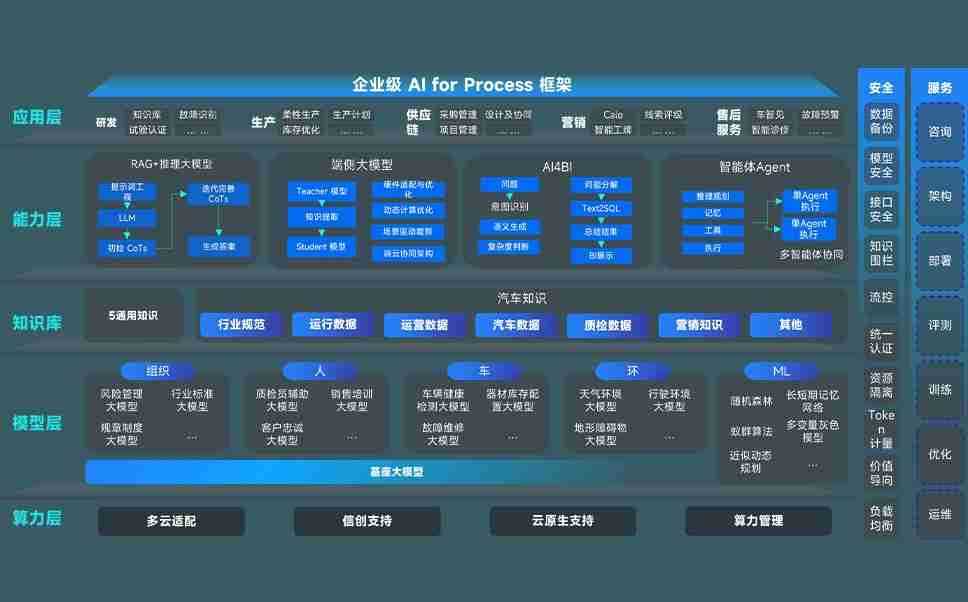 9001cc 以诚为本问学智车解决方案是一套基于AI技术的汽车行业智能化系统,,,覆盖从底层算力到顶层AI应用的全栈方案。。方案由算力层、、、、模型层和应用层组成:算力层,,,方案支持多种一体机配置,,,,具备云端灵活部署、、多云适配以及动态优化计算资源的能力;模型层,,9001cc 以诚为本问学平台版提供了企业级AI应用一站式构建与管理平台,,,,支持基于后训练强化技术的汽车企业专属模型的训练、、评测和运营;应用层,,,9001cc 以诚为本问学DeepSeek版提供包括超级员工、、、智能招采、、智能营销、、智能客服、、、、AI for BI等一系列解决方案,,可助力汽车行业实现数字化转型,,,让管理更智能、、、、响应更敏捷。。